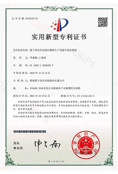 2021年,被河南省科技廳認定為河南省瞪羚企業(yè)。金剛石微納粉體河南省工程實驗室、河南省亞微米超硬材料粉體工程技術研究中心建設依托單位、設立了河南省微納米金剛石粉體材料院士工作站及河南省博士后研發(fā)基地。