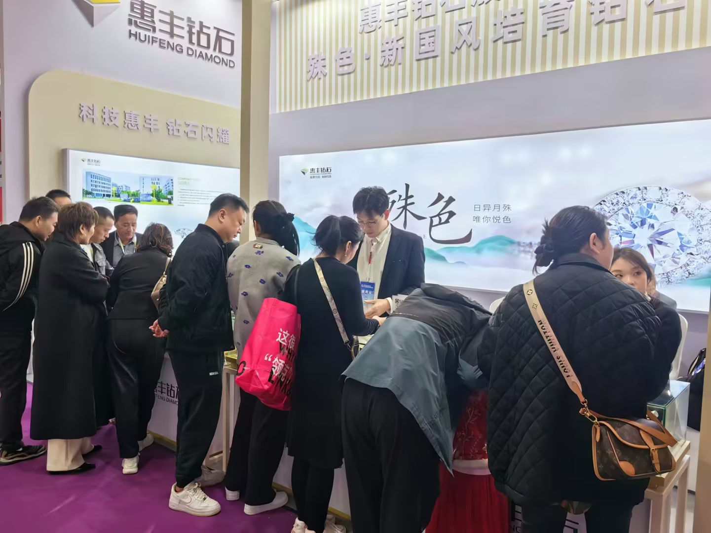 2024年8月9日惠豐鉆石旗下培育鉆石品牌“殊色”璀璨亮相廣州鉆石交易中心,引起了行業(yè)內的廣泛關注。作為金剛石領域的知名企業(yè),惠豐金剛石此次參展旨在展示其最新的產品與技術成果,拓展商業(yè)合作機會,并加強與國內外同行的交流。在交易中心的展會現場,惠豐金剛石的展位格外引人注目。精心陳列的各類金剛石制品,從精致的首飾到工業(yè)級的高精度工具,無不彰顯著惠豐公司在金剛石加工領域的精湛工藝和卓越品質。展會期間,惠豐金剛石還積極參與了多場行業(yè)研討會和交流活動,與其他企業(yè)共同探討金剛石行業(yè)的發(fā)展趨勢和市場前景。公司負責人表示